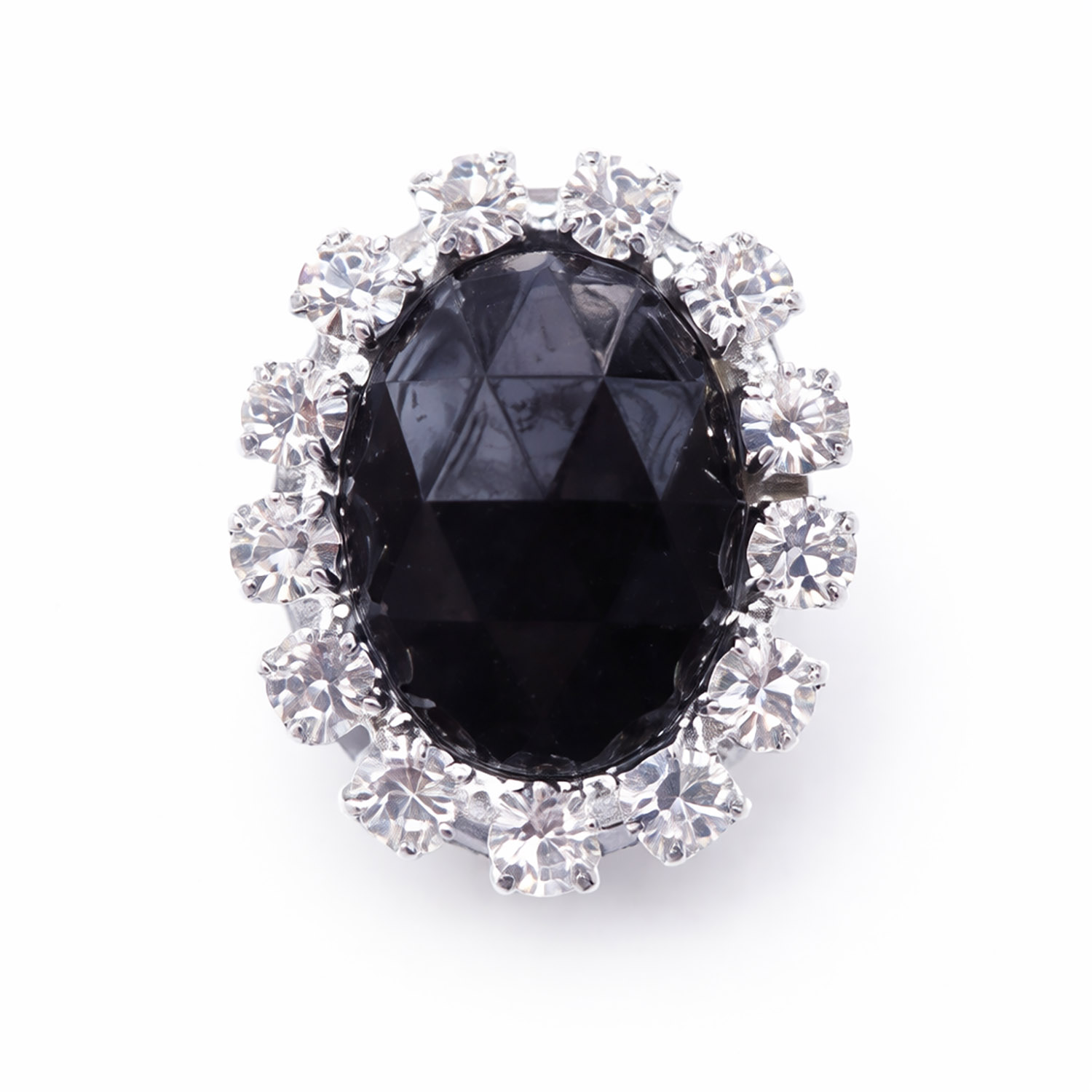 Manufactured in Thailand for wholesale supply, this brooch combines high-quality materials with reliable craftsmanship. The Grade A rhinestone crystals offer exceptional clarity and brilliance, while the black onyx stone provides a bold and elegant focal point.