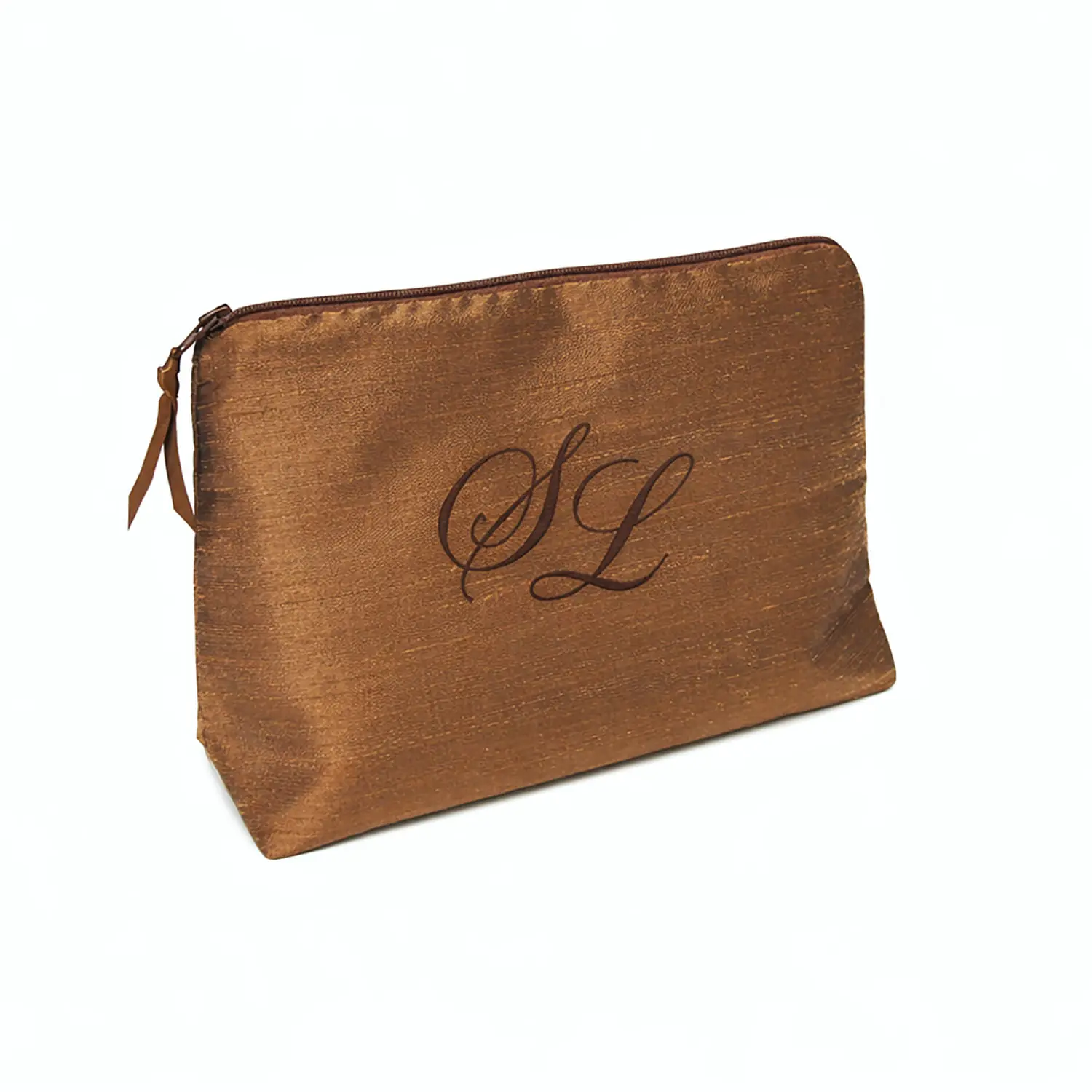 Our silk cosmetic bags are designed to be fully customizable. Choose from more than 200 silk colors to perfectly match your wedding theme or brand identity. Popular choices include elegant neutrals such as chocolate brown, champagne, ivory, and soft pastels.