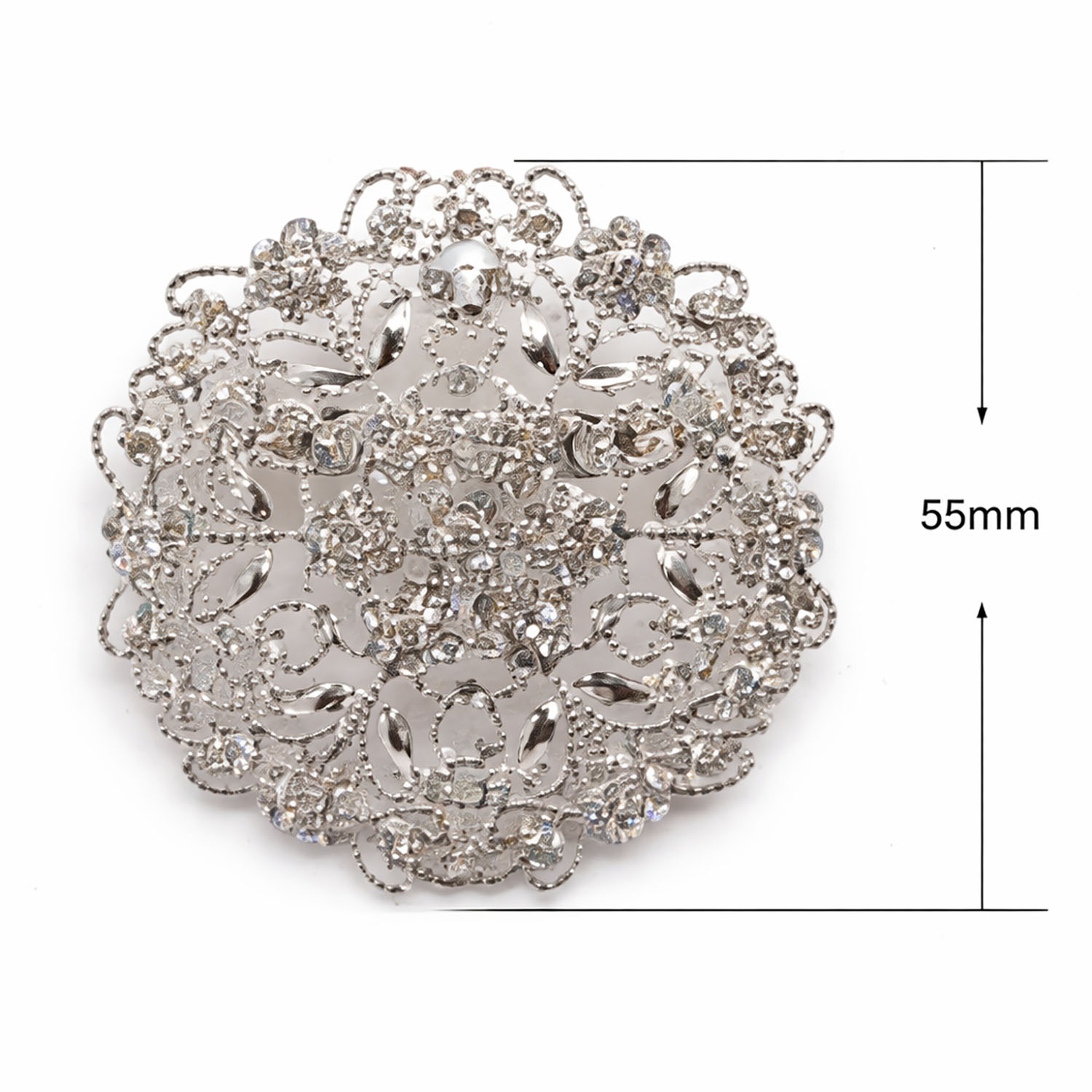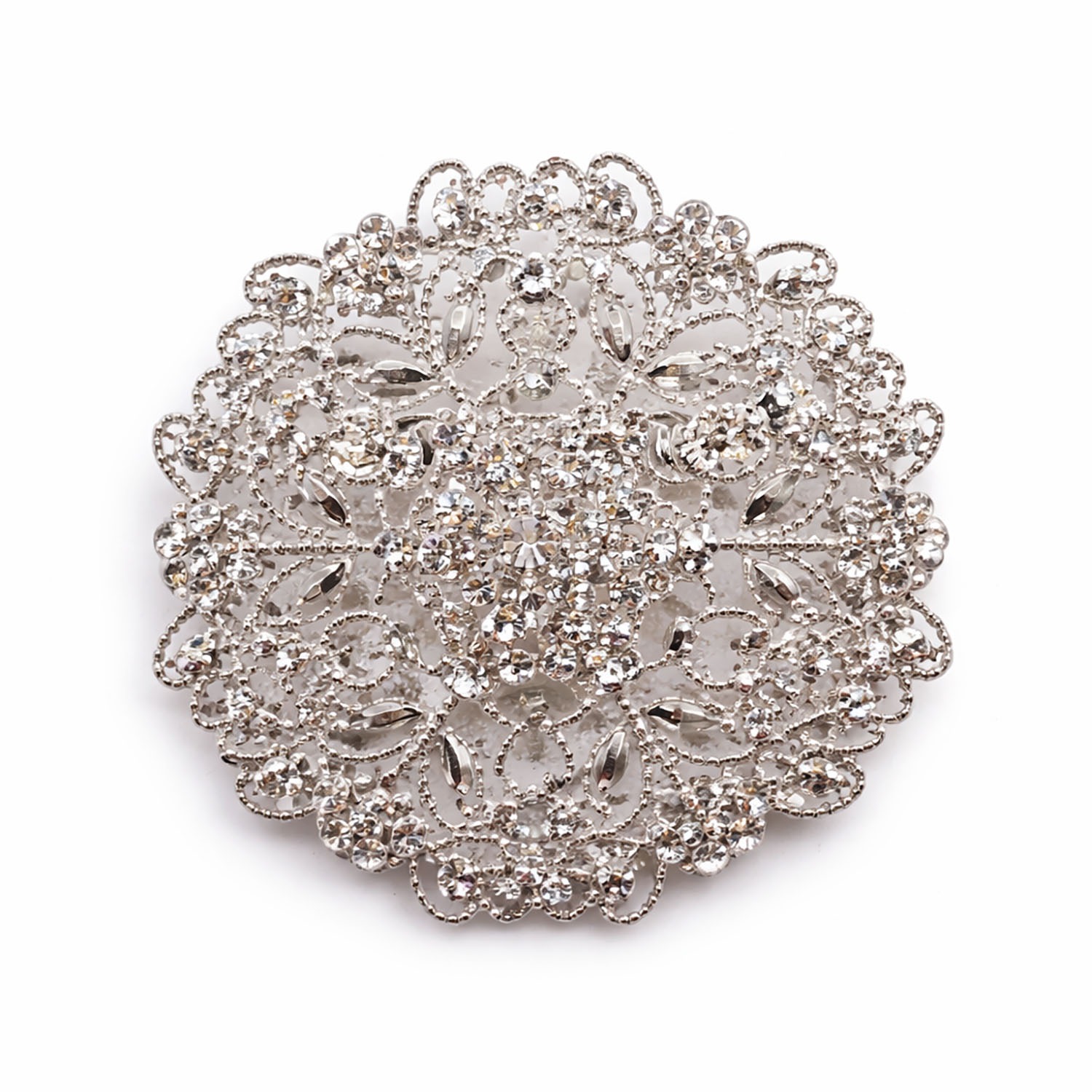 Add brilliance and elegance to your designs with our large round rhinestone flower brooch, featuring a modern floral-inspired arrangement of Grade A rhinestone crystals. Set on a silver-plated base, this brooch is designed to capture and reflect light beautifully, creating a luxurious and eye-catching effect.