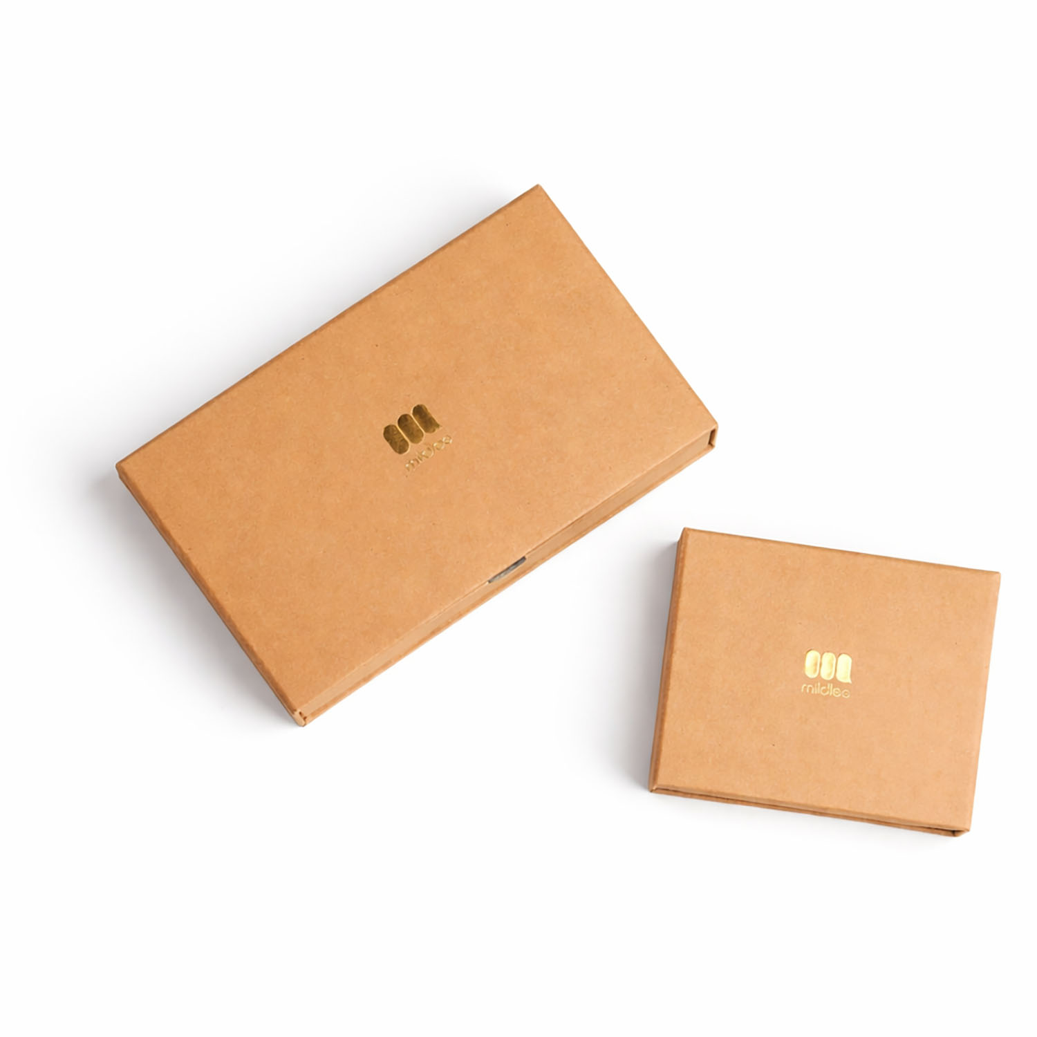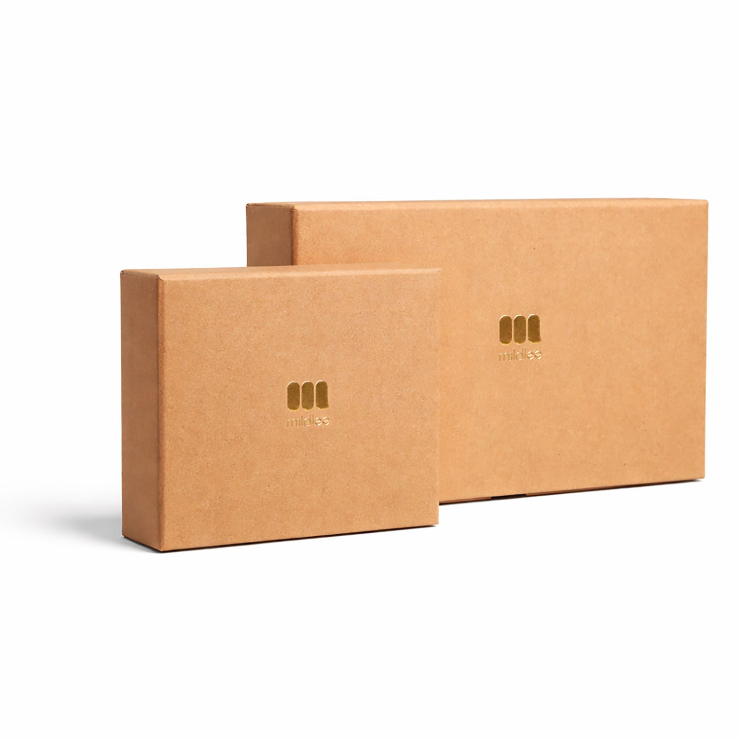Crafted from high-quality sturdy cardboard and wrapped in natural kraft paper, these boxes provide durability while maintaining an eco-conscious, minimalist look. The smooth surface is enhanced with a refined gold foil stamped logo, adding a touch of sophistication and elevating your brand presentation instantly. Explore more custom packaging ideas on our blog.