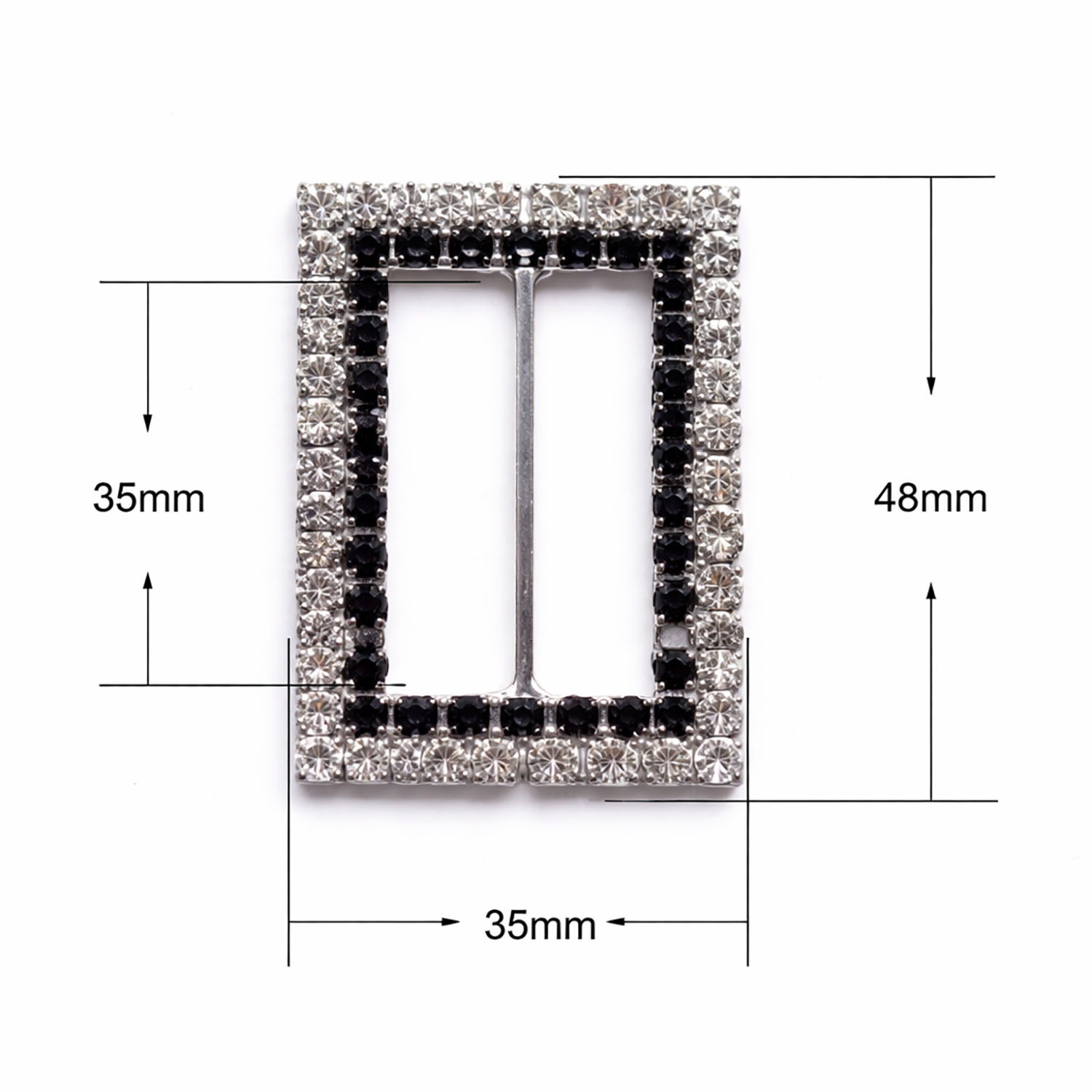 The sleek rectangle shape (48 × 35 mm) provides a structured and contemporary look, ideal for both classic and modern themes. Each crystal is precisely set to maximize brilliance, while the sturdy metal base ensures long-lasting durability and a premium finish.