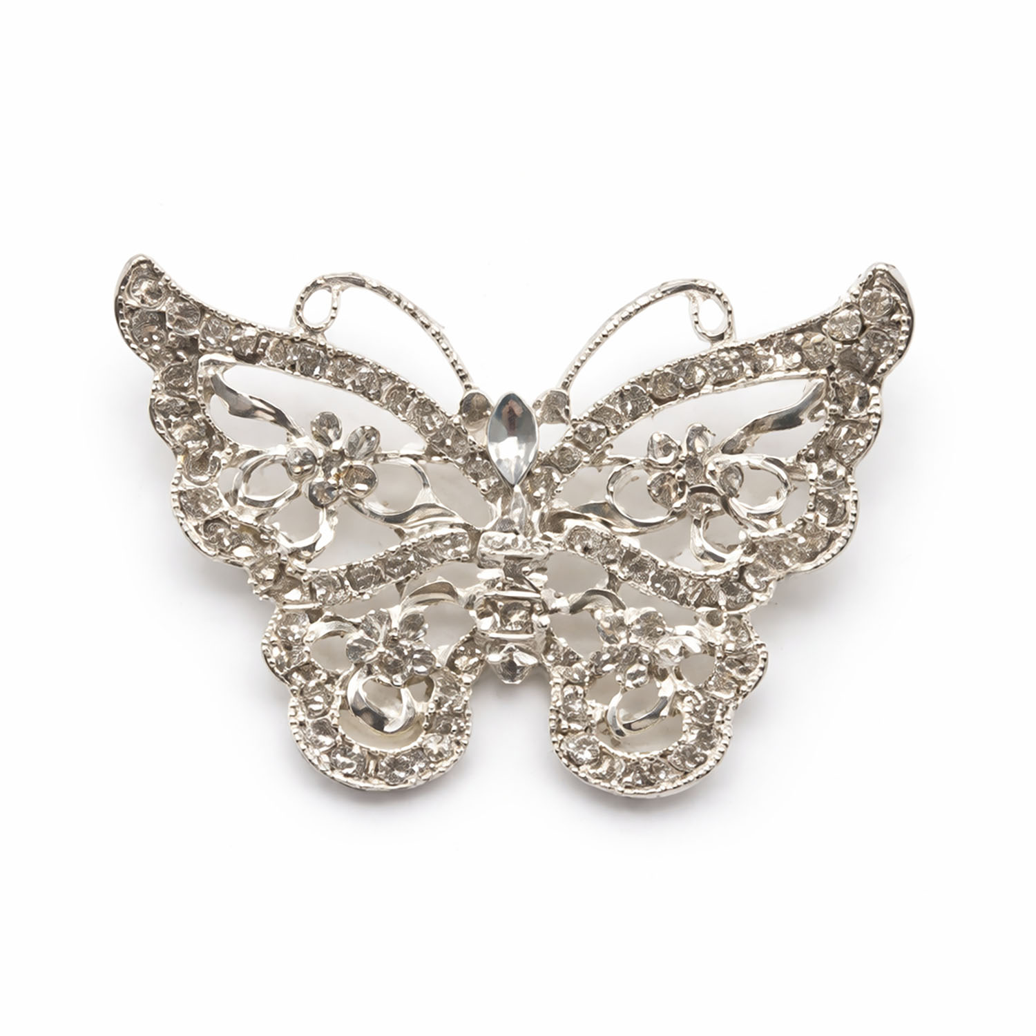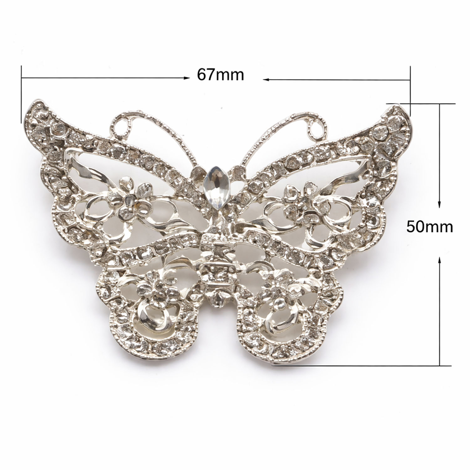 Add a touch of elegance and charm to your designs with our silver butterfly crystal brooch, a beautifully crafted embellishment designed for weddings and special events. Featuring a delicate butterfly shape, this brooch is adorned with Grade A clear rhinestone crystals and accented with a striking black onyx stone, creating a sophisticated contrast and eye-catching sparkle.